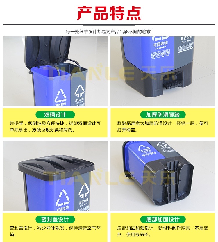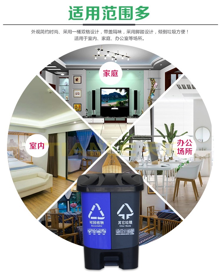 1、雙桶設(shè)計(jì)并帶提手,傾倒垃圾方便快捷,拆卸雙桶設(shè)計(jì)可單獨(dú)拿出,方便垃圾分類和清洗。