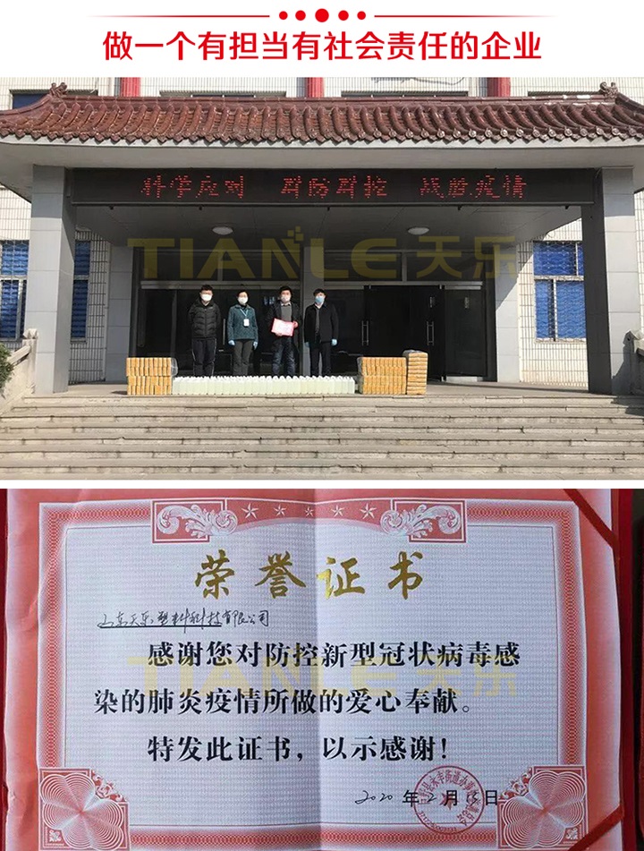 【做一個(gè)有擔(dān)當(dāng)有社會(huì)責(zé)任的企業(yè)】2020年注定是一個(gè)不平凡的一年,新年伊始,新冠肺炎疫情迅速蔓延,嚴(yán)重危及到人民的生命安全及企業(yè)的經(jīng)營(yíng)、生產(chǎn)。天樂(lè)公司作為地方民營(yíng)企業(yè),積極履行社會(huì)責(zé)任,捐贈(zèng)一批消毒液、口罩等物資到巨野縣慈善總會(huì),為疫情防控提供力所能及的幫助。