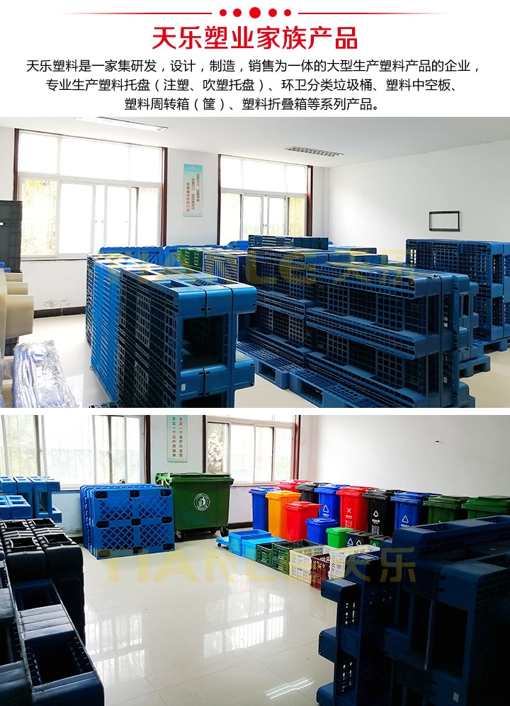 山東天樂(lè)塑料科技有限公司坐落于山東省菏澤市巨野縣城東工業(yè)園,緊鄰327國(guó)道,地理位置優(yōu)越,交通便利。天樂(lè)塑料是一家集研發(fā),設(shè)計(jì),制造,銷售為一體的大型生產(chǎn)塑料產(chǎn)品企業(yè),公司擁有大型注塑、吹塑成型設(shè)備十多臺(tái),擁有經(jīng)驗(yàn)豐富的設(shè)計(jì)研發(fā)團(tuán)隊(duì),可提供產(chǎn)品定制服務(wù)。專業(yè)生產(chǎn)塑料托盤(pán)(注塑、吹塑托盤(pán))、環(huán)衛(wèi)分類垃圾桶、塑料中空板、塑料周轉(zhuǎn)箱(筐)、塑料折疊箱等系列產(chǎn)品。